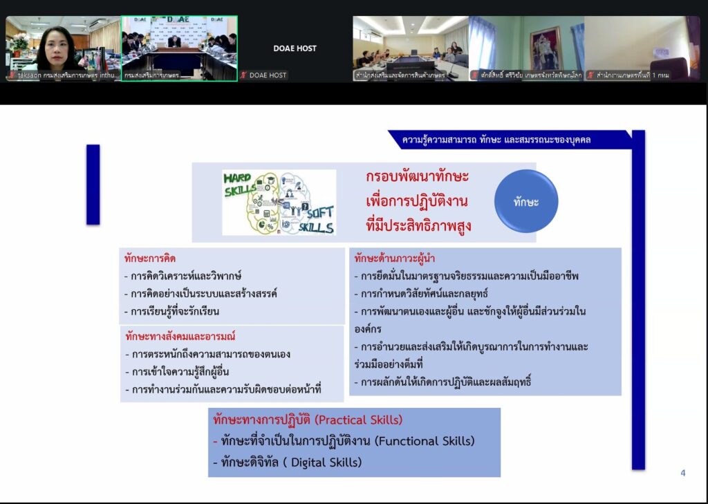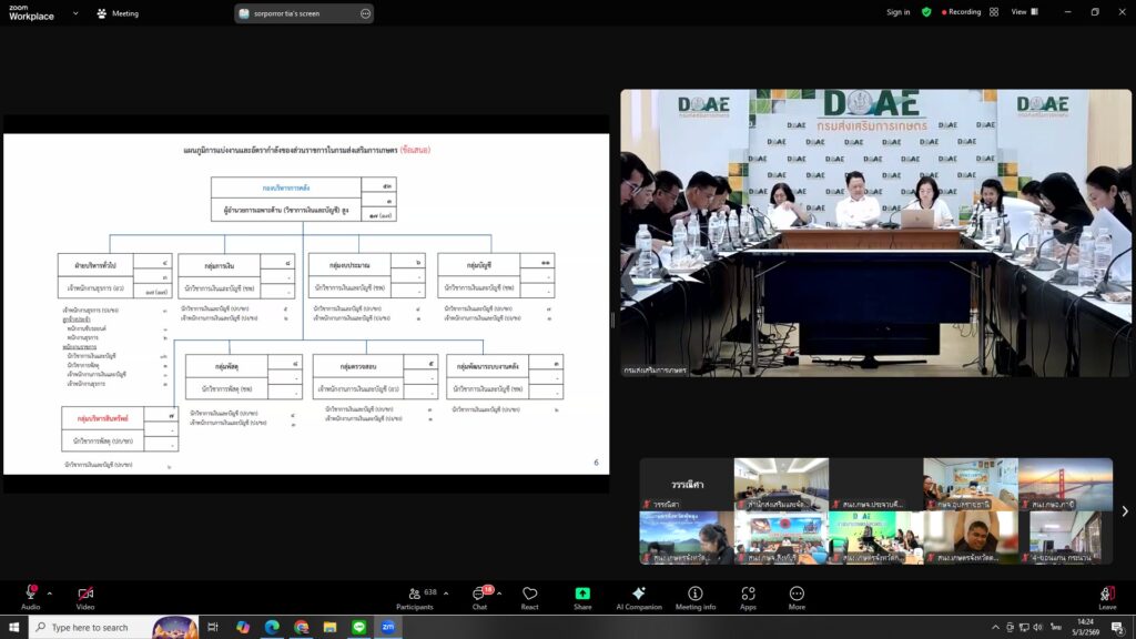 เพื่อพิจารณาร่างข้อเสนอการปรับปรุงการแบ่งส่วนราชหาร การแบ่งหน่วยงานภายใน อัตรากำลังของกรมส่งเสริมการเกษตร สมรรถนะเฉพาะตามลักษณะงานที่ปฏิบัติ และทักษะที่จำเป็นสำหรับการปฏิบัติงานในตำแหน่งของข้าราชการกรมส่งเสริมการเกษตร