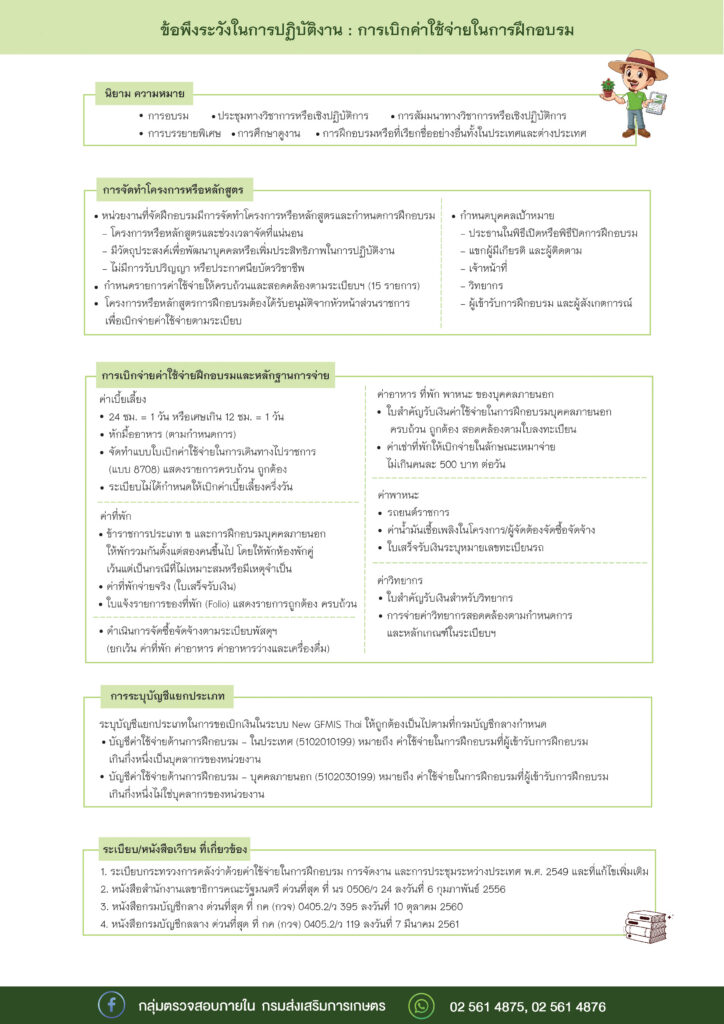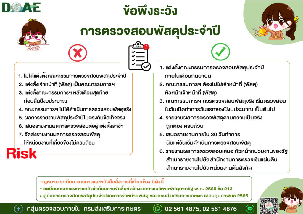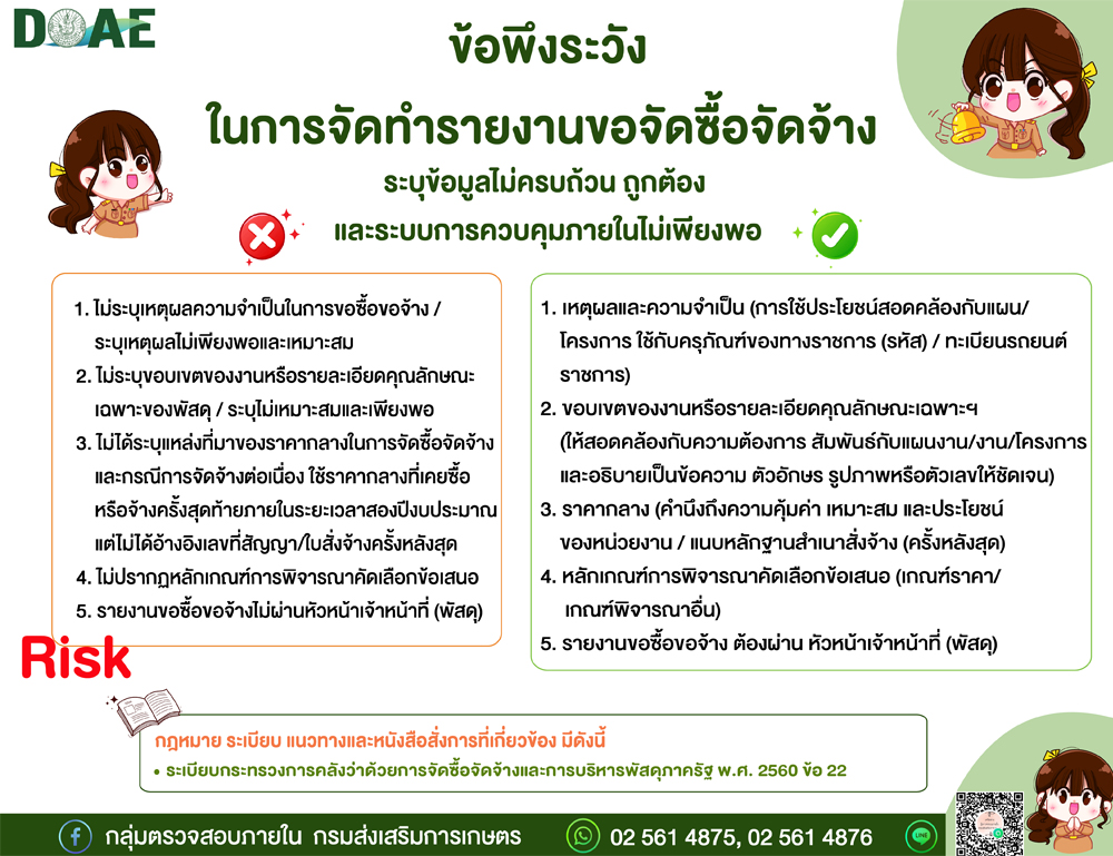 สื่อเรียนรู้ การทดรองจ่ายกรณีเร่งด่วน VS การจัดซื้อตาม ว 804 กระบวนการการบริหารจัดการความเสี่ยง เทคนิค 3E”s เพื่อการตรวจสอบการดำเนินงาน (Performance Audit) ข้อพึงระวังใรการเบิกค่าใช้จ่ายในการเดินทางไปราชการและการเบิกค่าใช้จ่ายในการฝึกอบรม ลดความเสี่ยงในการปฏิบัติงานบริหารพัสดุและทรัพย์สิน ข้อพึงระวัง : ค่าเช่าบ้านข้าราชการ ข้อพึงระวัง : การเดินทางไปราชการชั่วคราว ข้อพึงระวัง : การบริหารสินทรัพย์ ข้อพึงระวัง : การจัดซื้อจัดจ้าง (วิธีเฉพาะเจาะจง) ข้อพึงระวัง : การเบิกค่าใช้จ่ายในการฝึกอบรม ข้อพึงระวังในการจัดทำรายงานขอจัดซื้อจัดจ้าง ข้อพึงระวังการตรวจสอบพัสดุประจำปี ทำไมต้องจำหน่ายพัสดุ ? แนะนำผู้ตรวจสอบภายใน