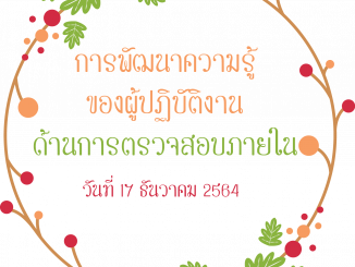 การพัฒนาความรู้ของผู้ปฏิบัติงานด้านการตรวจสอบภายใน วันที่ 20 ธันวาคม 2564