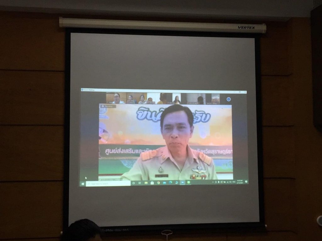 การประชุมเปิดการตรวจสอบศูนย์ส่งเสริมและพัฒนาอาชีพการเกษตร จังหวัดสุราษฎร์ธานี แบบออน์ไลน์ผ่านระบบ Zoom เพื่อตรวจสอบและประเมินความเสี่ยงให้หน่วยงานรับทราบ ในวันที่ 15 กุมภาพันธ์ 2564