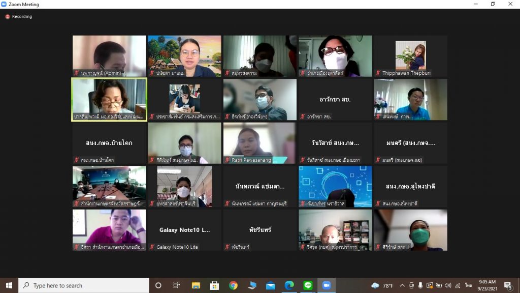 การสัมมนาเชิงปฏิบัติการโครงการเพิ่มประสิทธิภาพการพัฒนางานประจำสู่งานวิจัยกับเจ้าหน้าที่กรมส่งเสริมการเกษตร (Routine to Research : R2R) ในวันที่ 23 กันยายน 2564