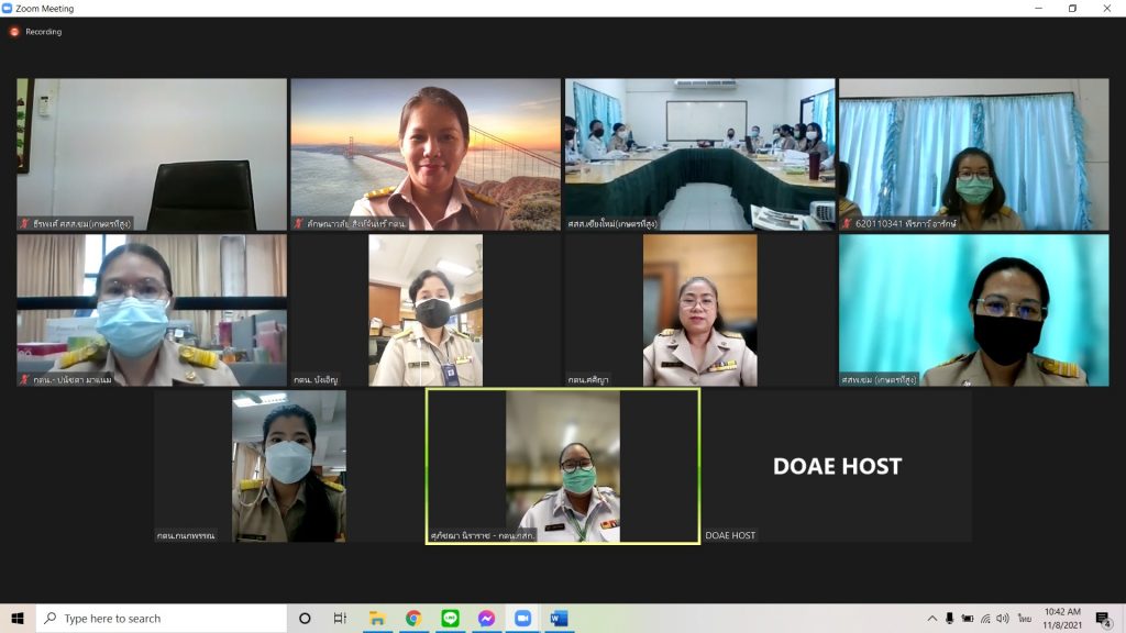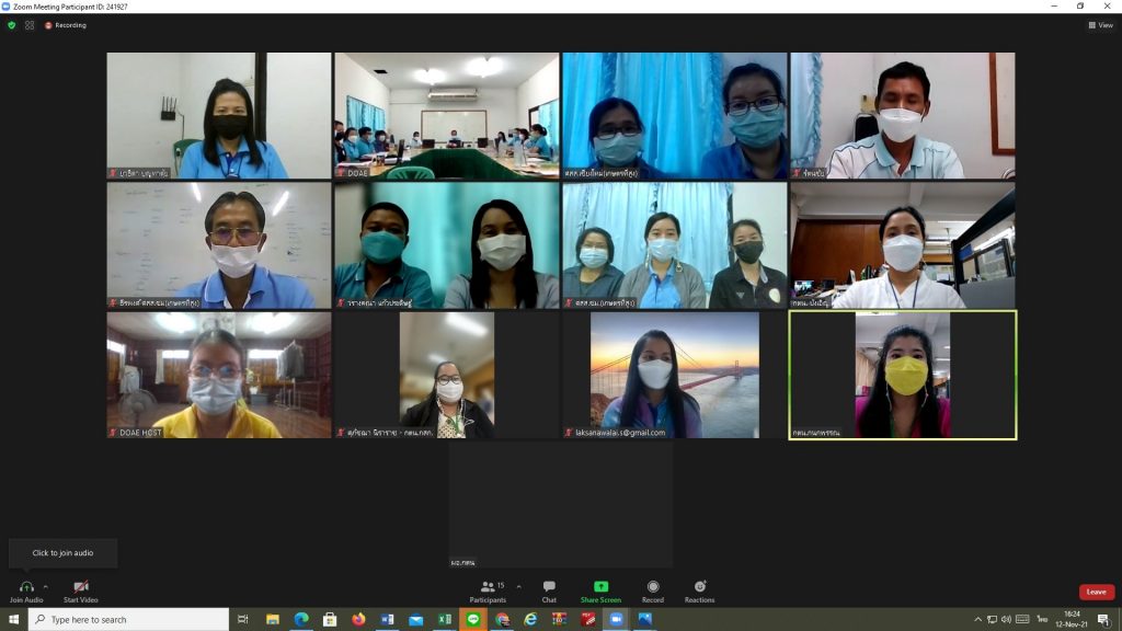 การประชุมเปิดการตรวจสอบศูนย์ส่งเสริมและพัฒนาอาชีพการเกษตร จังหวัดเชียงใหม่ (เกษตรที่สูง) แบบออน์ไลน์ผ่านระบบ Zoom เพื่อตรวจสอบและประเมินความเสี่ยงให้หน่วยงานรับทราบ ในวันที่ 8 พฤศิกายน 2564 และประชุมปิดการตรวจสอบวันที่ 12 พฤศจิกายน 2564