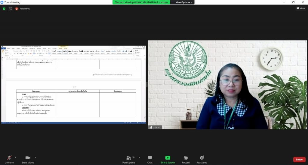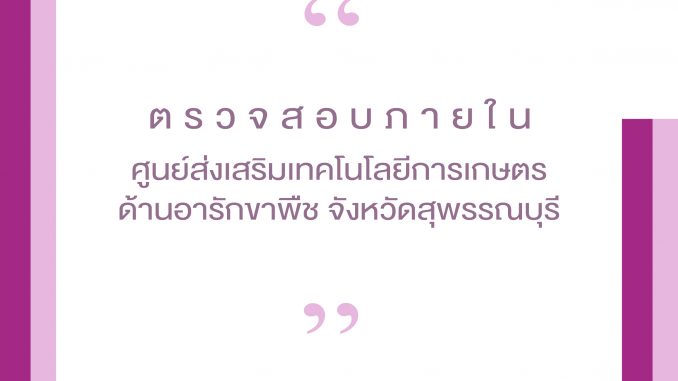 การประชุมเปิดการตรวจสอบศูนย์ส่งเสริมเทคโนโลยีการเกษตร จังหวัดสุพรรณบุรี แบบออน์ไลน์ผ่านระบบ Zoom เพื่อตรวจสอบและประเมินความเสี่ยงให้หน่วยงานรับทราบ ในวันที่ 22 พฤศิกายน 2564 และประชุมปิดการตรวจสอบวันที่ 1 ธันวาคม 2564