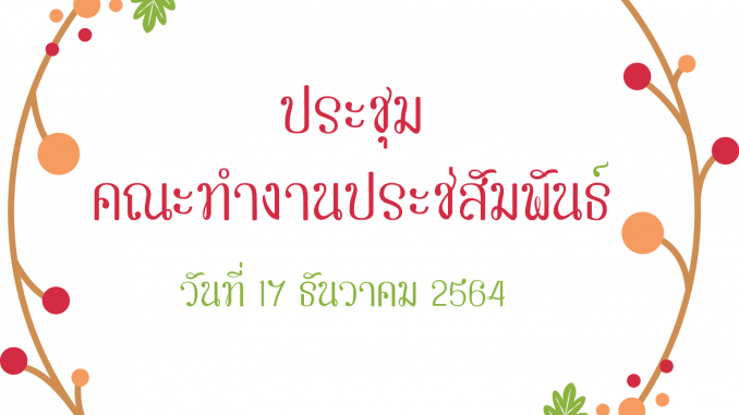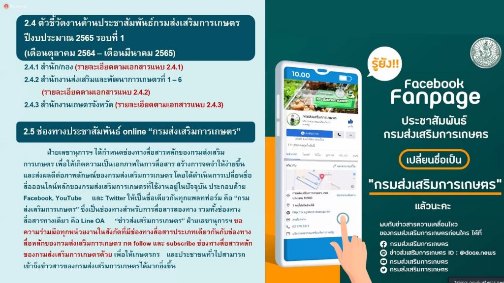 การประชุมคณะทำงานประชาสัมพันธ์ กรมส่งเสริมการเกษตร ครั้งที่ 1/2564 วันที่ 17 ธันวาคม 2564 เพื่อพิจารณาแผนประชาสัมพันธ์ กรมส่งเสริมการเกษตร ไตรมาสที่ 1-2 (เดือนธันวาคม 2564 ถึงเดือนมีนาคม 2565) และกิจกรรมที่เกี่ยวข้อง