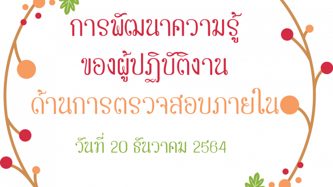 โดย นางศศิญา เพชรกำเนิด นักวิชาการตรวจอสอบภายในชำนาญการพิเศษ ปฏิบัติหน้่าที่ผู้อำนวยการกลุ่มตรวจสอบภายใน