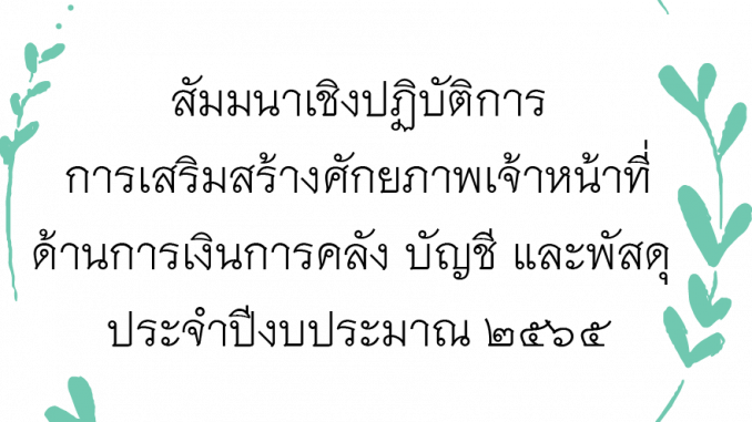 กรมส่งเสริมการเกษตร ได้จัดสัมมนาสัมมนาเชิงปฏิบัติการการเสริมสร้างศักยภาพเจ้าหน้าที่ด้านการเงินการคลัง บัญชี และพัสดุ ประจำปีงบประมาณ 2565 ระหว่างวันที่ 11-12 มกราคม 2565
