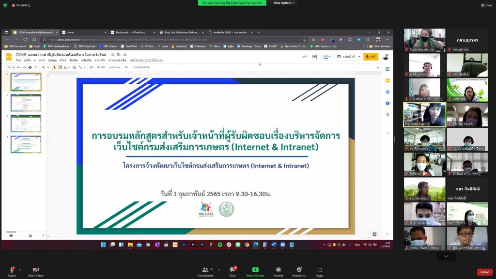 การอบรมการใช้งานเว็บไซต์กรมส่งเสริมการเกษตร (Internet & Intranet) สำหรับเจ้าหน้าที่ผู้รับผิดชอบเรื่องบริหารจัดการเว็บไซต์กรมส่งเสริมการเกษตร รูปแบบออนไลน์ ผ่าน Application Zoom ในวันที่ 1 กุมภาพันธ์ 2565