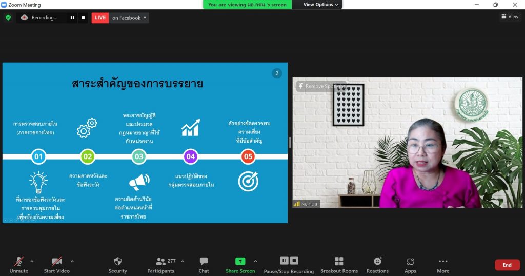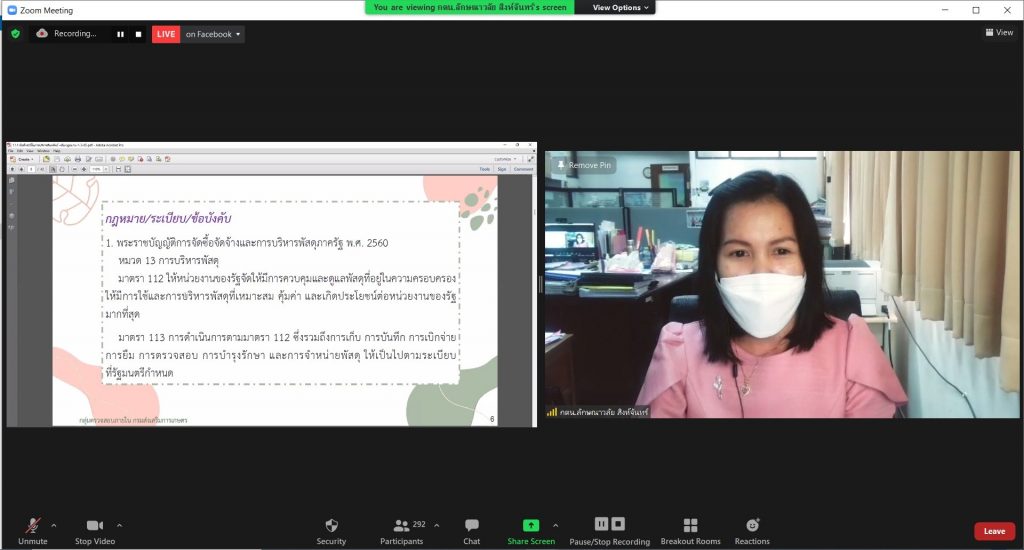 เจ้าหน้าที่กลุ่มตรวจสอบภายใน ร่วมเป็นวิทยากรบรรยายความรู้ ข้อควรพึงระวังในการปฏิบัติตามกฎหมาย ระเบียบ ข้อสั่งการ ด้านการเงินการคลังและพัสดุ ในการสัมมนาเชิงปฏิบัติการฯ ในวันที่ 1 มีนาคม 2565