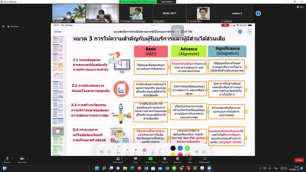 การประชุมคณะกรรมทำงานพัฒนาคุณภาพการบริหารจัดหารองค์การกรมส่งเสริมการเกษตร เพื่อรับทราบแนวทางการประเมินองค์การตามแนวทางการพัฒนาคุณภาพการบริหารจัดการภาครัฐในการเป็นระบบราชการ 4.0 (PMQA 4.0) ปี 2565 ในวันที่ 26 พฤษภาคม 2565 ผ่านระบบ Zoom โดยนางสาวกนกพรรณ พูลเพิ่ม นักวิชาการตรวจสอบภายในชำนาญการ เข้าร่วมการประชุม