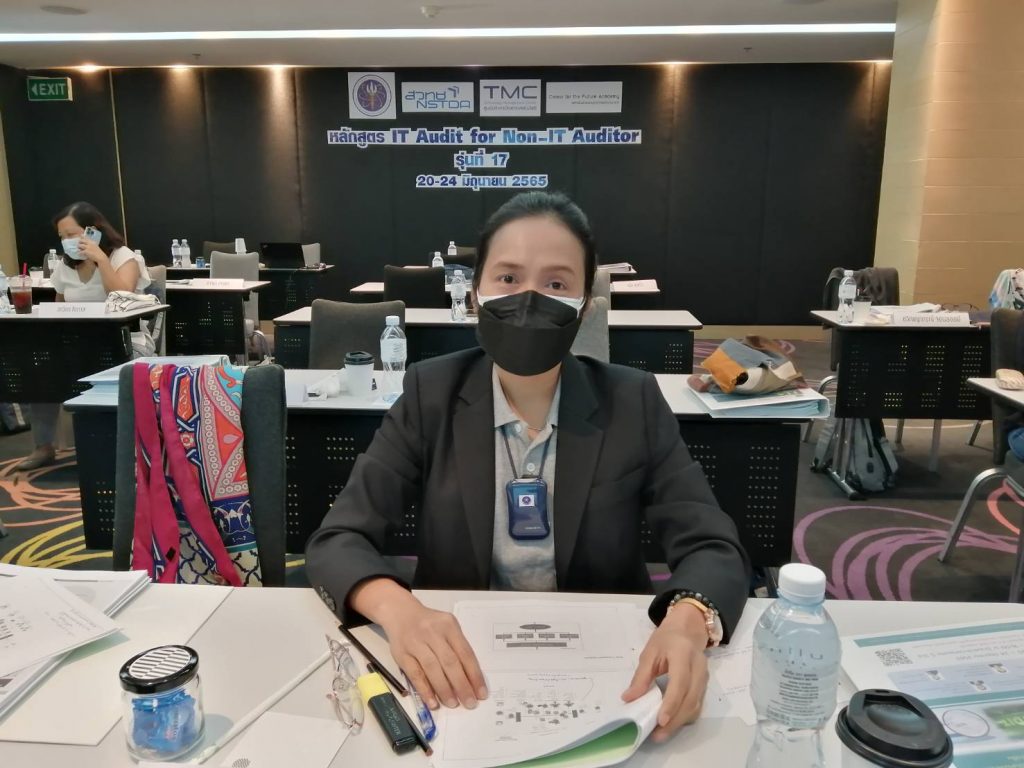 การฝึกอบรมโครงการอบรมหลักสูตร IT Audit for Non – IT Auditor Masterclass รุ่นที่ 17 วันที่ 20 – 24 มิถุนายน 2565 ณ โรงแรมพูลแมน คิง เพาเวอร์ กรุงเทพฯโดยนางสาวบังเอิญ แก้วพระโต นักวิชาการตรวจสอบภายในชำนาญการพิเศษ เข้ารับการอบรม