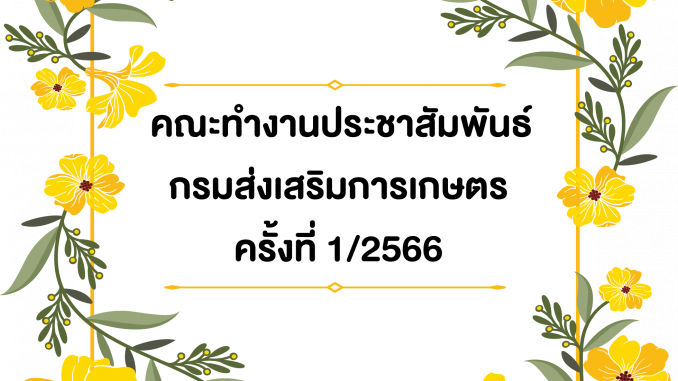 การประชุมคณะทำงานประชาสัมพันธ์กรมส่งเสริมการเกษตร ครั้งที่ 1/2566 เพื่อทราบรายงานผลการดำเนินงานด้านประชาสัมพันธ์ และพิจารณาแผนประชาสัมพันธ์กรมส่งเสริมการเกษตรไตรมาส ที่ 3 (เดือนเมษายน – มิถุนายน 2566) โดยนางสาวกนกพรรณ พูลเพิ่ม นักวิชาการตรวจสอบภายในชำนาญการ เข้าร่วมการประชุม เมื่อวันที่ 8 มีนาคม 2566