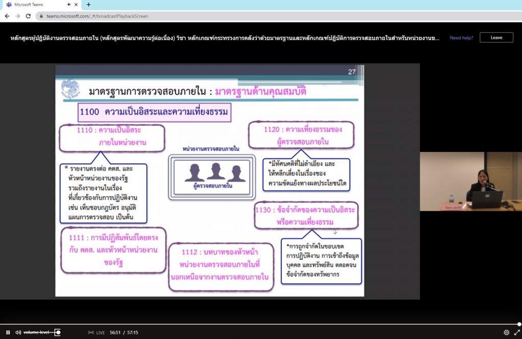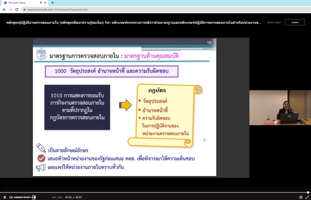 การพัฒนาความรู้ของผู้ปฏิบัติงานด้านการตรวจสอบภายในสำหรับหน่วยงานของรัฐ ประจำปีงบประมาณ พ.ศ. 2566 หลักสูตรผู้ปฏิบัติงานตรวจสอบภายใน หัวข้อ “การตรวจสอบภายในสำหรับหน่วยงานของรัฐ” โดยนางทักษอร อินทุเศรษฐ นักวิชาการตรวจสอบภายในชำนาญการ นางสาวกนกพรรณ พูลเพิ่ม นักวิชาการตรวจสอบภายในชำนาญการ นางสาวลักษณาวลัย สิงห์จันทร์ นักวิชาการตรวจสอบภายในชำนาญการ และนางสาวศุภัชฌา นิราราช นักวิชาการตรวจสอบภายใน เข้าร่วมการอบรม ในวันที่ 27 มีนาคม 2566