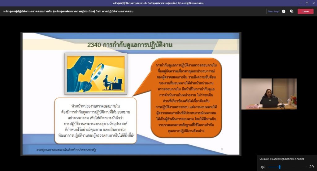การพัฒนาความรู้ของผู้ปฏิบัติงานด้านการตรวจสอบภายในสำหรับหน่วยงานของรัฐ ประจำปีงบประมาณ พ.ศ. 2566 หลักสูตรผู้ปฏิบัตองานตรวจสอบภายใน หัวข้อ “การปฏิบัติงานตรวจสอบภายใน” โดยนางปนัชดา มาแนม นักวิชาการตรวจสอบภายในชำนาญการ นางทักษอร อินทุเศรษฐ นักวิชาการตรวจสอบภายในชำนาญการ นางสาวกนกพรรณ พูลเพิ่ม นักวิชาการตรวจสอบภายในชำนาญการ นางสาวลักษณาวลัย สิงห์จันทร์ นักวิชาการตรวจสอบภายในชำนาญการ และนางสาวศุภัชฌา นิราราช นักวิชาการตรวจสอบภายใน เข้าร่วมการอบรม ในวันที่ 28 มีนาคม 2566