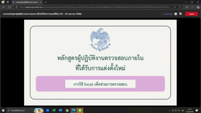 การพัฒนาความรู้ของผู้ปฏิบัติงานด้านการตรวจสอบภายในสำหรับหน่วยงานของรัฐ ประจำปีงบประมาณ พ.ศ. 2568 ผ่านระบบ Microsoft Team Live ระหว่างวันที่ 21 – 23 เมษายน 2568